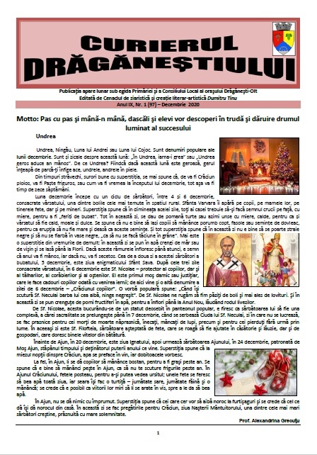 Curierul Drăgăneștiului – Ediția Decembrie 2020 Curierul Drăgăneștiului Ediția Decembrie 2020 1-12 Image 1 of 12